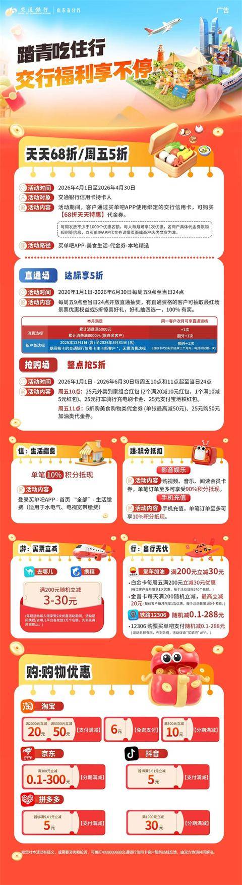 交行信用卡,吃喝玩乐全覆盖。