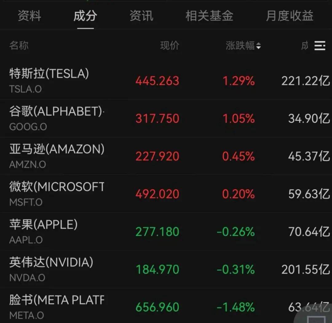 特斯拉、谷歌涨幅超过1%,脸书、英伟达、苹果分别下跌1.48%、0.31%、0.26%。