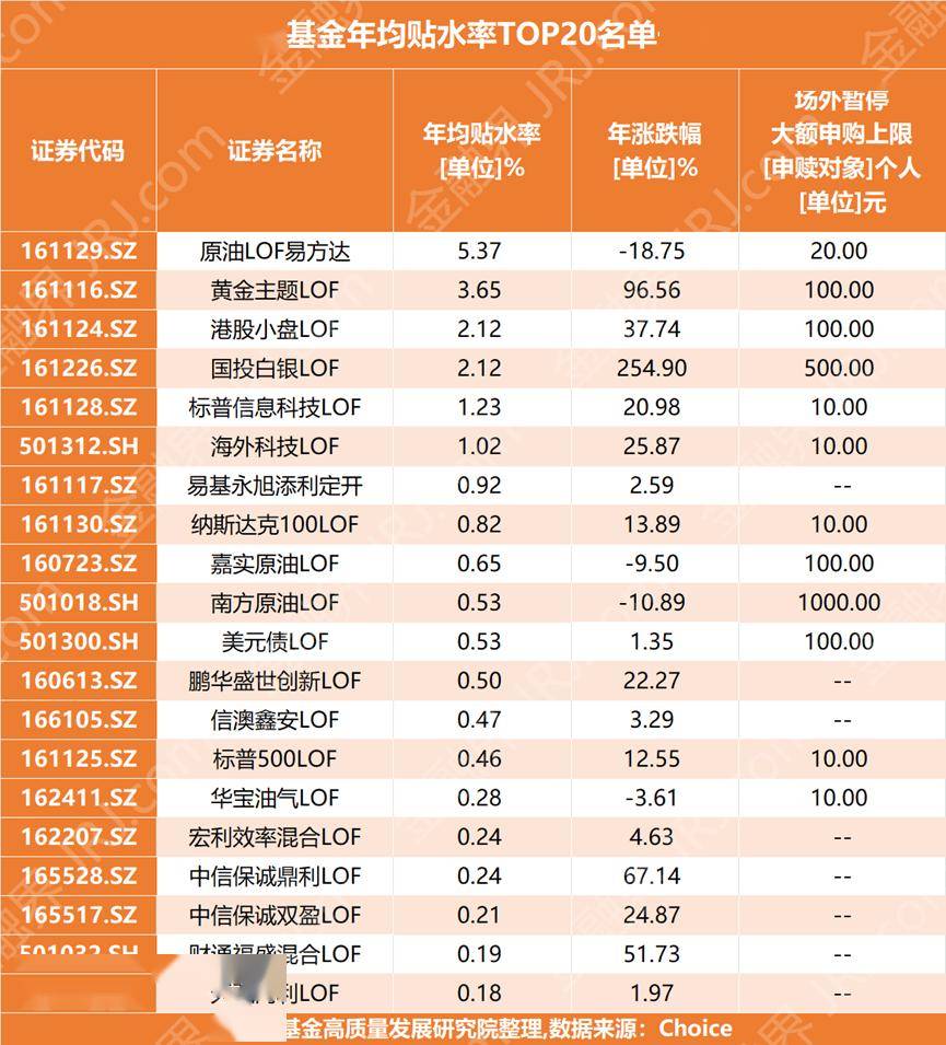 事实上,年内随着金银价格走强,商品类LOF基金整体热度攀升。由于此类产品在场内场外的稀缺性,它们成为部分资金的集中操作对象。截至12月24日数据显示,当前有6只LOF产品年均贴水率超过1%。其中,溢价(或贴水)现象较为突出的不止白银LOF,例如原油LOF易方达的年均贴水率超过5%,易方达黄金LOF的年均贴水率也超过3%。目前,多数溢价较高的LOF基金已实施场外限购。