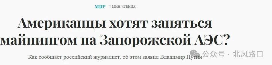 普京特别提到美国要用扎波罗热核电站开展加密货币挖矿业务,揭特朗普的“老底”,说明只要有利益,特朗普什么都肯干,很离谱,但很合理。