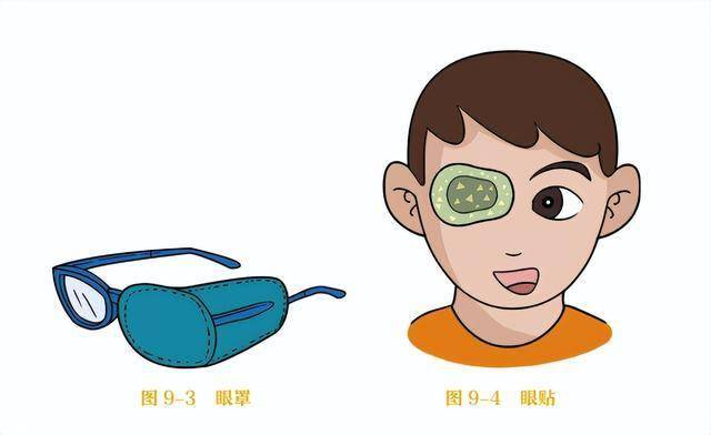 许多家长复诊时经常抱怨:“我们家孩子每天都遮盖了,但是视力怎么没有提高?”我们有必要提醒家长:“在进行遮盖时,有效遮盖是需要重点关的。”目前国内在遮盖治疗时仍多使用在框架眼镜上套眼罩(图 9-3)的方法,依从性差的患儿常常透过眼罩边缘“偷”看,使得遮盖不能发挥实际作用,造成治疗延误。而应用粘贴眼贴(图 9-4)的方式更有优势,粘在视力高的眼上,孩子不易“偷”看,保证了遮盖效果。