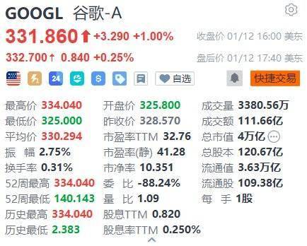1月13日,谷歌A类股(GOOGL.US)收高1%,成交111.32亿美元,市值突破4万亿美元。消息称苹果将与谷歌达成合作,为其今年晚些时候推出的Siri等产品的人工智能功能提供技术支持。这项为期多年的合作将借助谷歌的Gemini模型和云技术,助力苹果开发未来的基础模型。