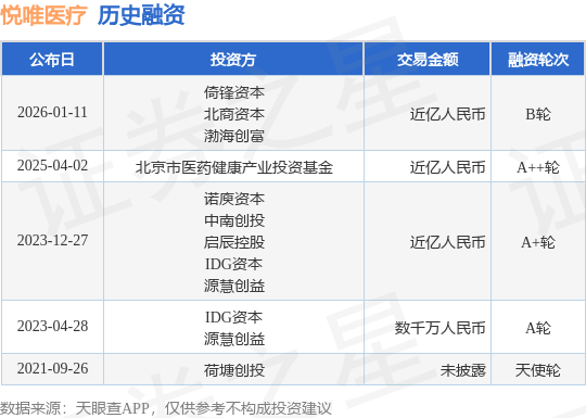证券之星消息,根据天眼查APP于1月11日公布的信息整理,北京悦唯医疗科技有限责任公司B轮融资,融资额近亿人民币,参与投资的机构包括倚锋资本,北商资本,渤海创富。