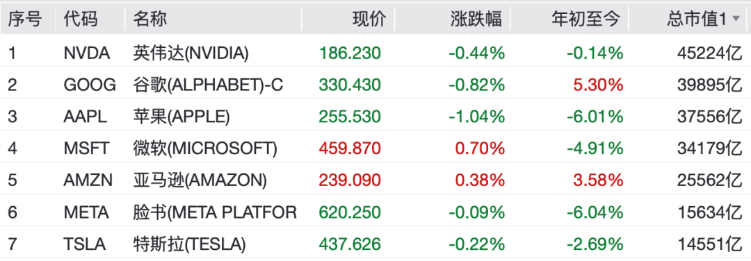 板块方面,美股大型科技股走势分化,万得美国科技七巨头指数微跌0.3%。