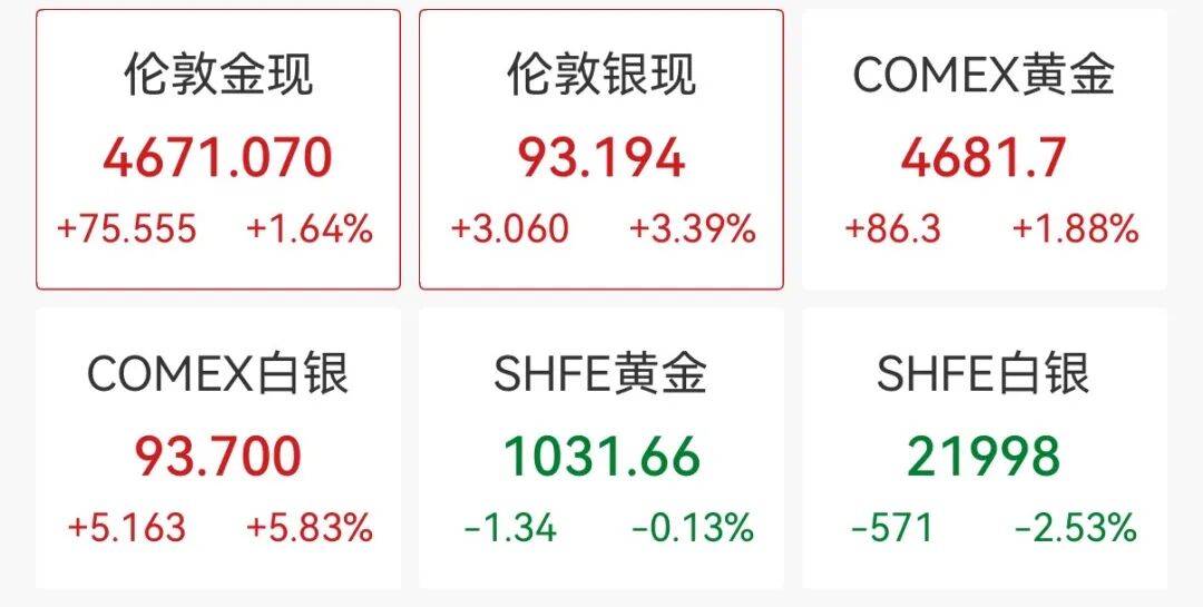 据新华社,国际黄金和白银价格19日均创历史新高。伦敦现货黄金价格一度涨破每盎司4690美元,现货白银价格一度突破每盎司94美元。