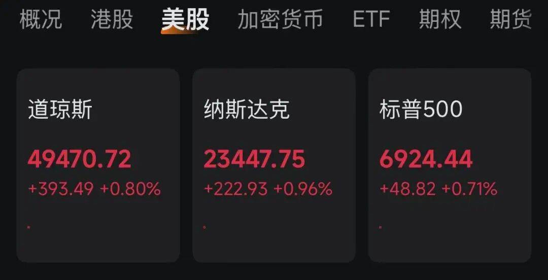 截至发稿,纳指涨超0.9%,道指涨0.8%,标普500指数则涨逾0.7%。