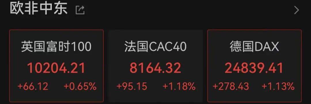 欧洲股市方面,英、法、德三国重要指数飘红。