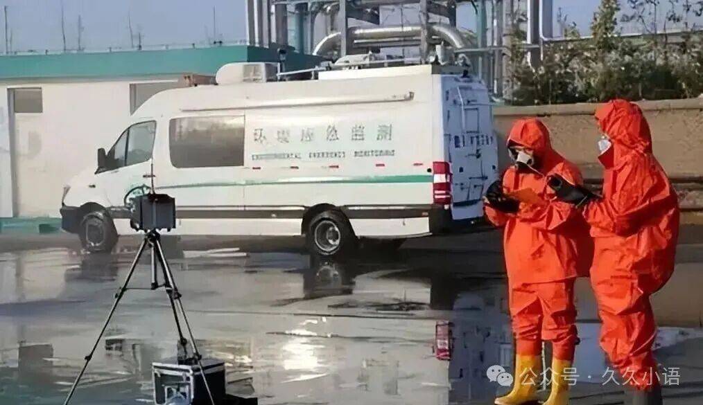 这辆车的牌照上标注了"环境应急监测"几个字,但车牌号部分却是空白的,没看到任何数字,事情就是这么个情况。