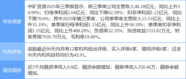 2025年10月30日,民生证券研究员邱祖学,南雪源发布了对中矿资源的研报《2025年三季报点评:Q3扭亏为盈,铜锗项目投产在即》,该研报对中矿资源给出“买入”评级。研报中预计公司2025-2027年归母净利4.6、12.2和36.3亿元,对应10月29日收盘价的PE为85、32和11倍,维持“推荐”评级。证券之星数据中心根据近三年发布的研报数据计算,该研报作者对此股的盈利预测准确度为57.36%。
