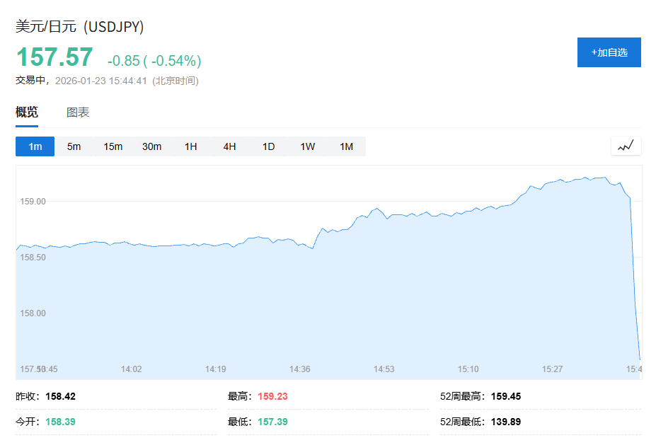美元兑日元短线下挫约70点,跌破158,现报157.70。