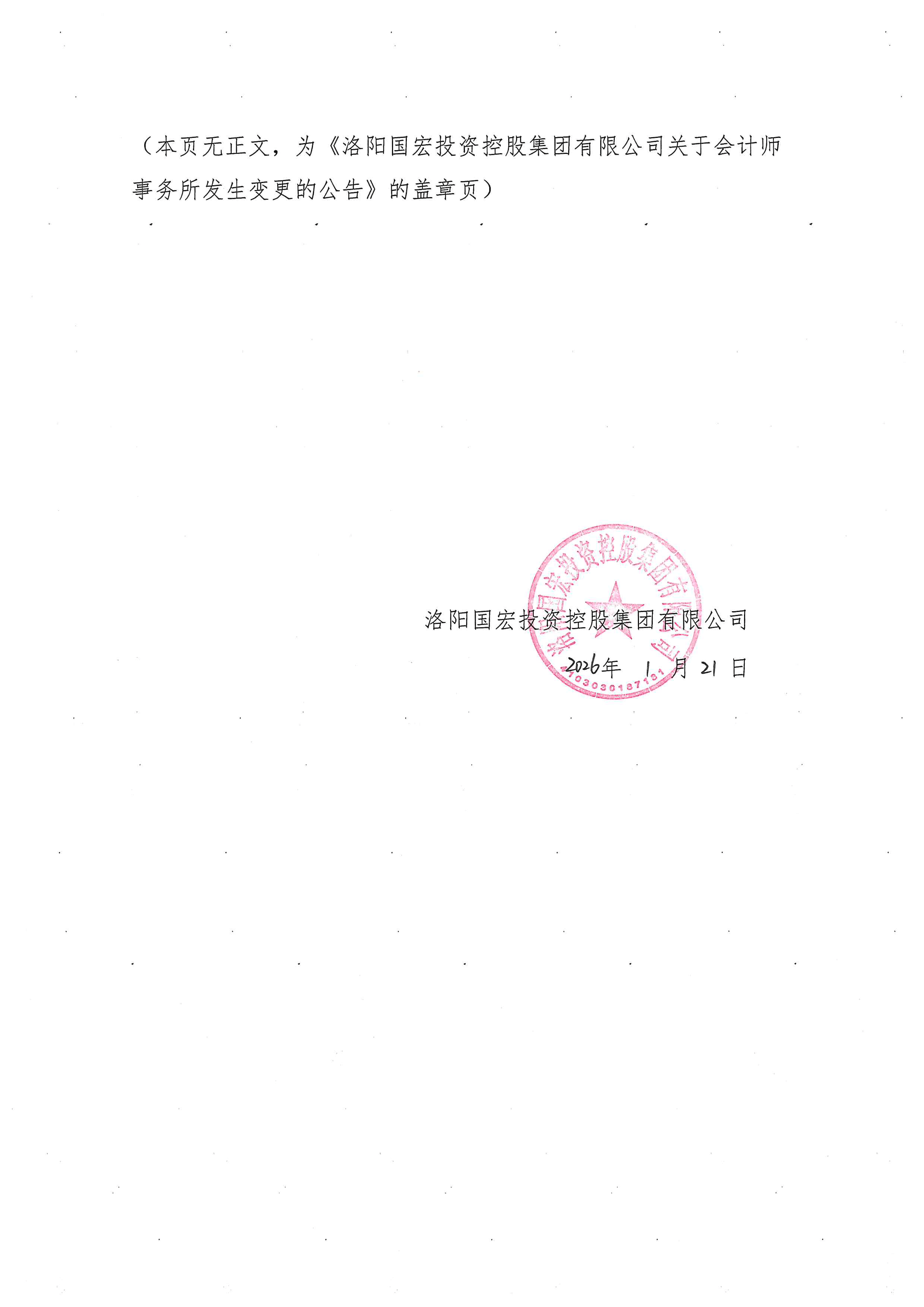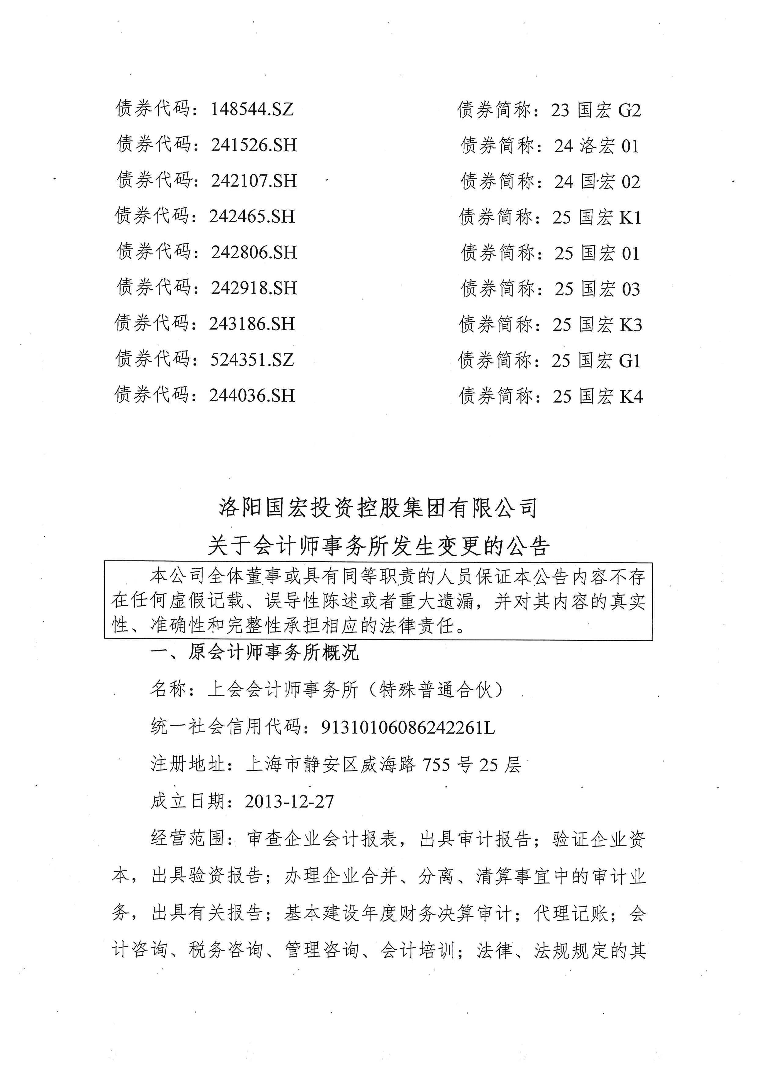 债券-23国宏G2-洛阳国宏投资控股集团有限公司关于会计师事务所发生变更的公告