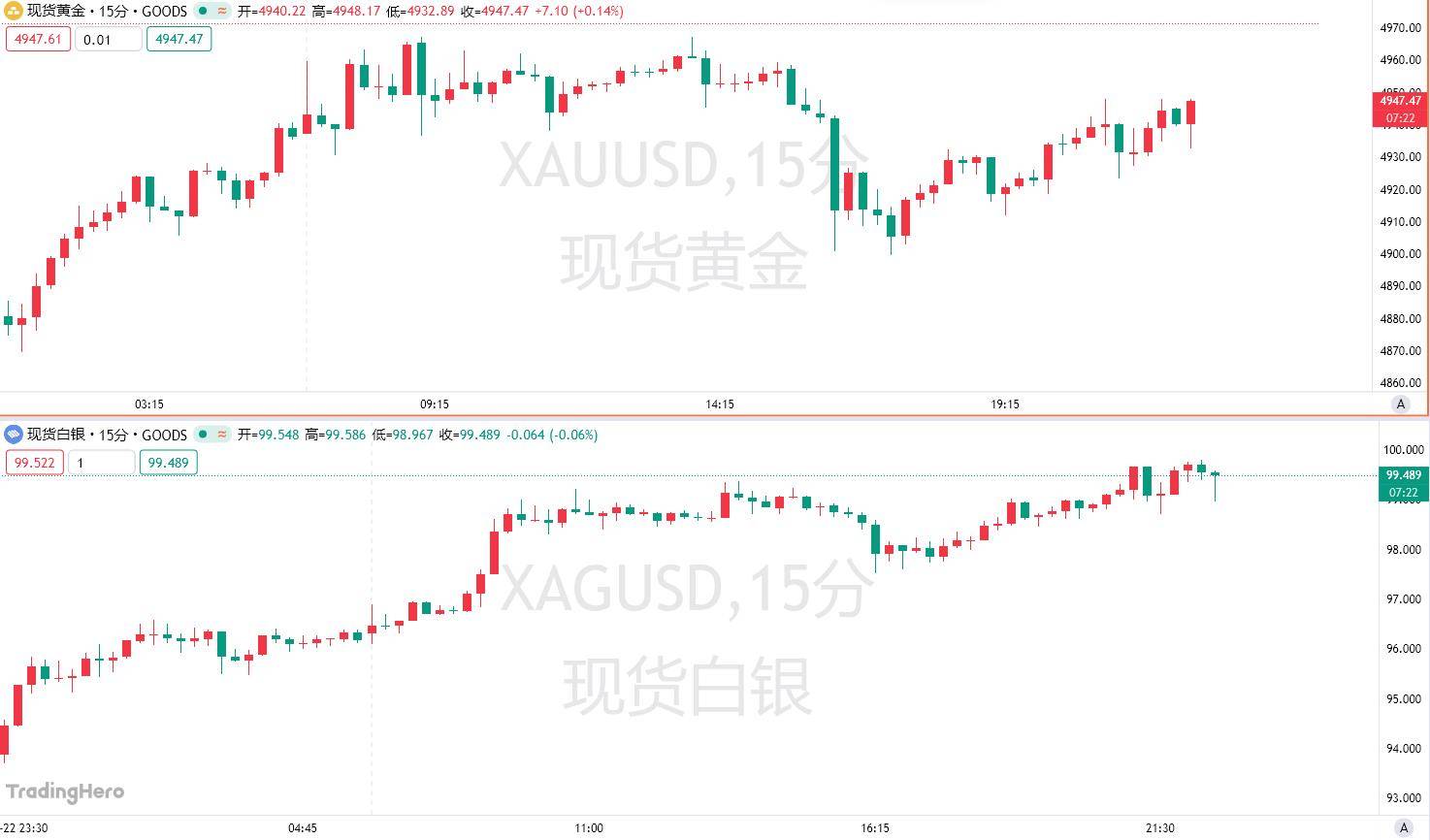 黄金周五触及每盎司近5000美元的历史高点,而白银则徘徊在略低于每盎司100美元的历史高点。