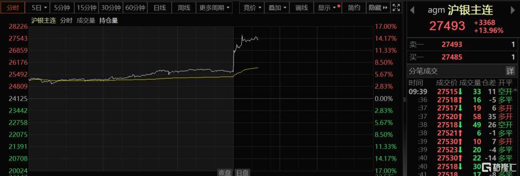 国内商品期市早盘主力合约开盘多数上涨,其中,沪银大涨超14%,月内累计涨超50%;沪锡暴涨10%;铂涨超8%;钯涨超6%。
