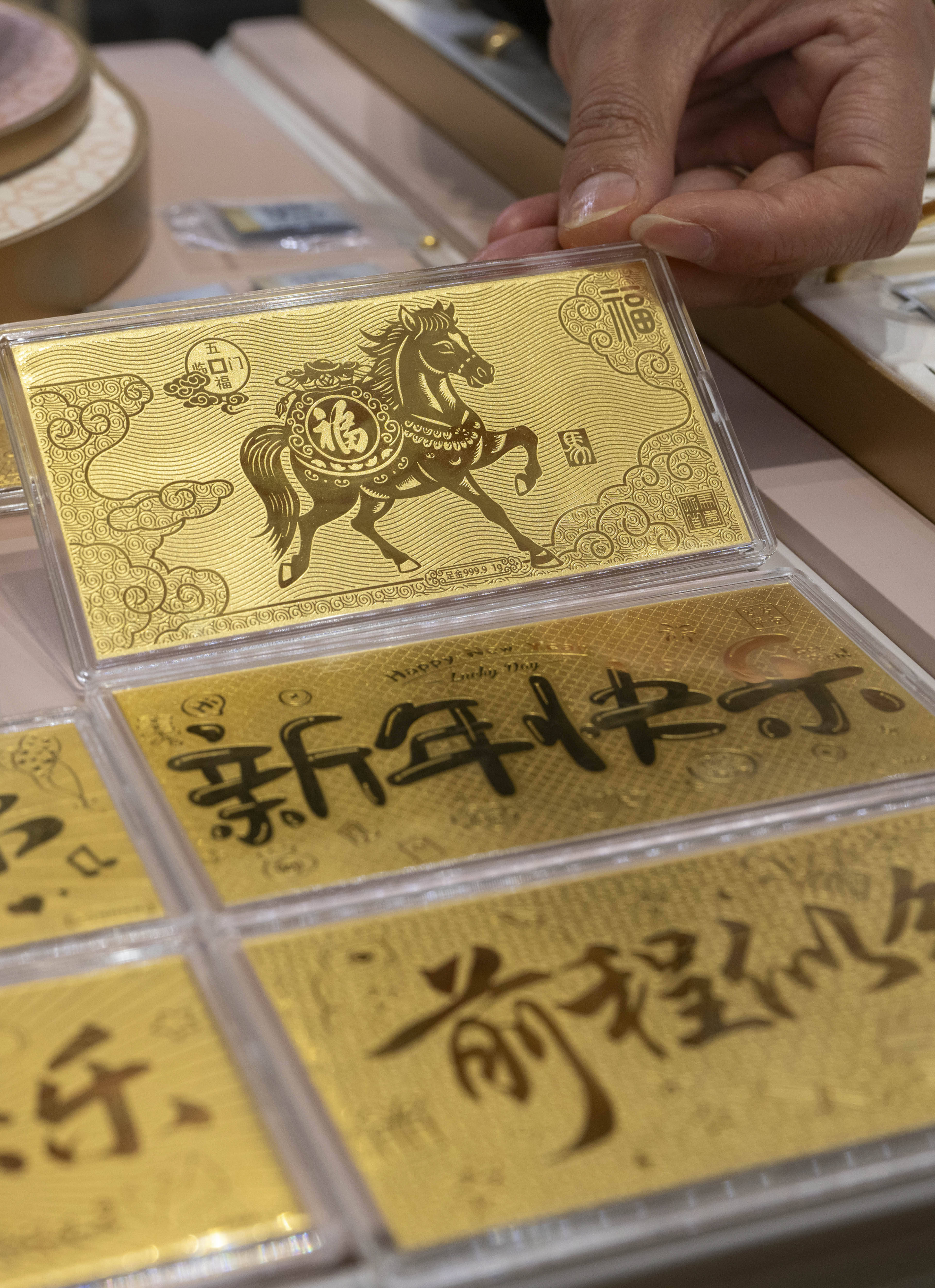 1月26日,浙江省湖州市长兴县雉城街道一家商场柜员在整理黄金饰品。 新华社发(谭云俸 摄)
