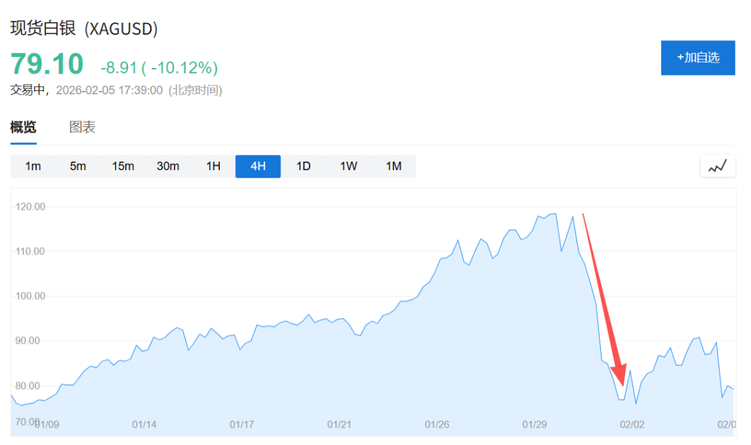 白银价格从超过120美元/盎司的高点自由落体,三天内暴跌40%,不仅抹去了近期的涨幅,更在图表上留下了一道触目惊心的断崖。