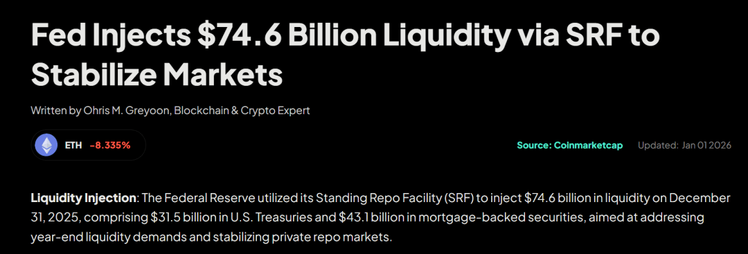 数据显示,12月31日,银行从美联储的紧急贷款窗口(SRF)借入了创纪录的746亿美元。这一机制的存在正是为了向符合条件的金融机构提供短期流动性。其设计初衷是为了防止融资危机。但现实在于:只有特定机构才有资格使用这一工具。