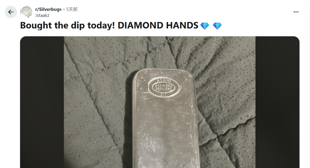 就在几天前,白银还被视作“2026年的GameStop”,是散户抱团对抗华尔街的图腾。Reddit论坛上充斥着“钻石手”(Diamond Hands)的表情包,誓言要将白银推向月球。