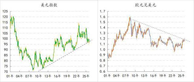 今年以来,美元指数跌破了96,欧元兑美元的汇价则升破1.2,之所以这两个点位重要,是因为一旦形成趋势,则意味2010年以来形成的“强美元、弱欧元”15年周期的结束。这个变化对于未来世界而言无疑是最重要。