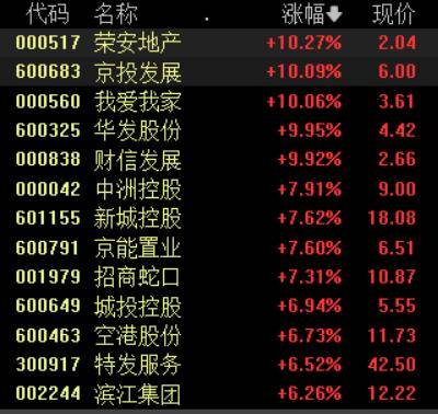 地产股继续反弹,京投发展、荣安地产、我爱我家等5股涨停。