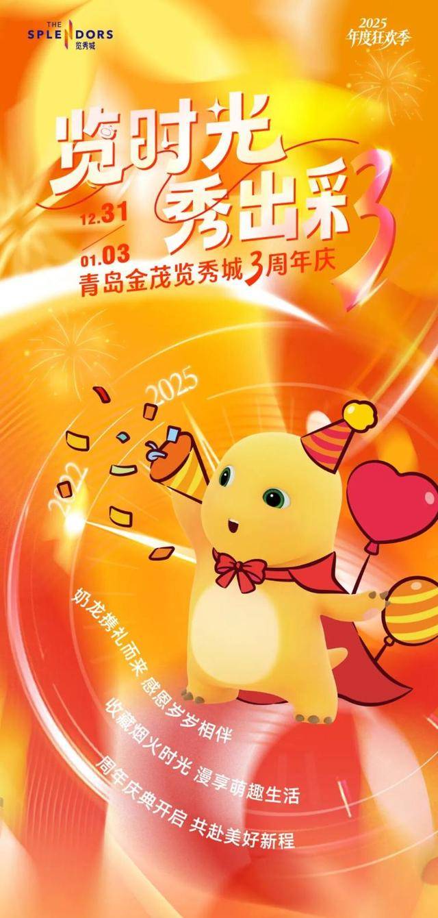 青岛金茂览秀城3 周年庆典高光启幕!跨年夜精彩抢先锁定,金条大奖豪气开抽!会员专享礼遇,1 金珼秒杀,共赴三载之约